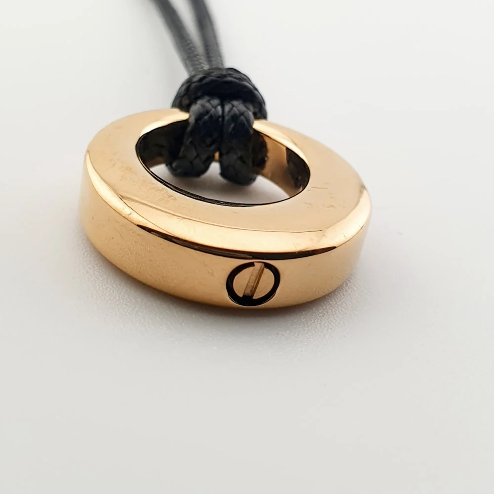 De ketting is 55 cm lang, waardoor hij elegant op de borst rust. De bolvormige hanger is 2 cm hoog en 1,5 cm breed, een subtiele maar betekenisvolle grootte. De hanger heeft een schroefbare dop, wat het vullen eenvoudig maakt en zorgt voor een veilige afsluiting van de as. De gouden ring die om de bol heen gaat, voegt een extra vleugje elegantie en betekenis toe.