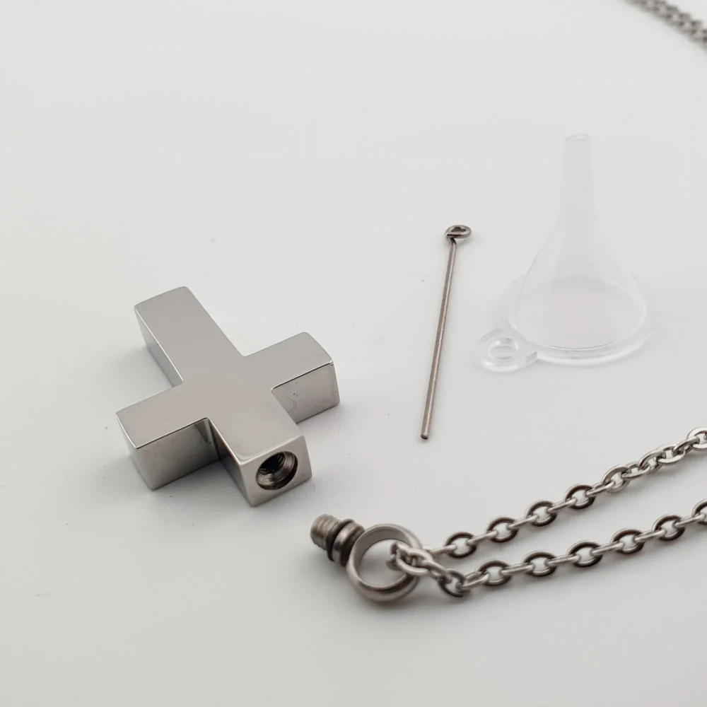 Breng een herinnering aan je dierbaren met deze prachtige Kruis Crematie Hanger. Gemaakt van premium roestvrijstaal, garandeert het een duurzame en tijdloze herinnering die generaties lang meegaat.