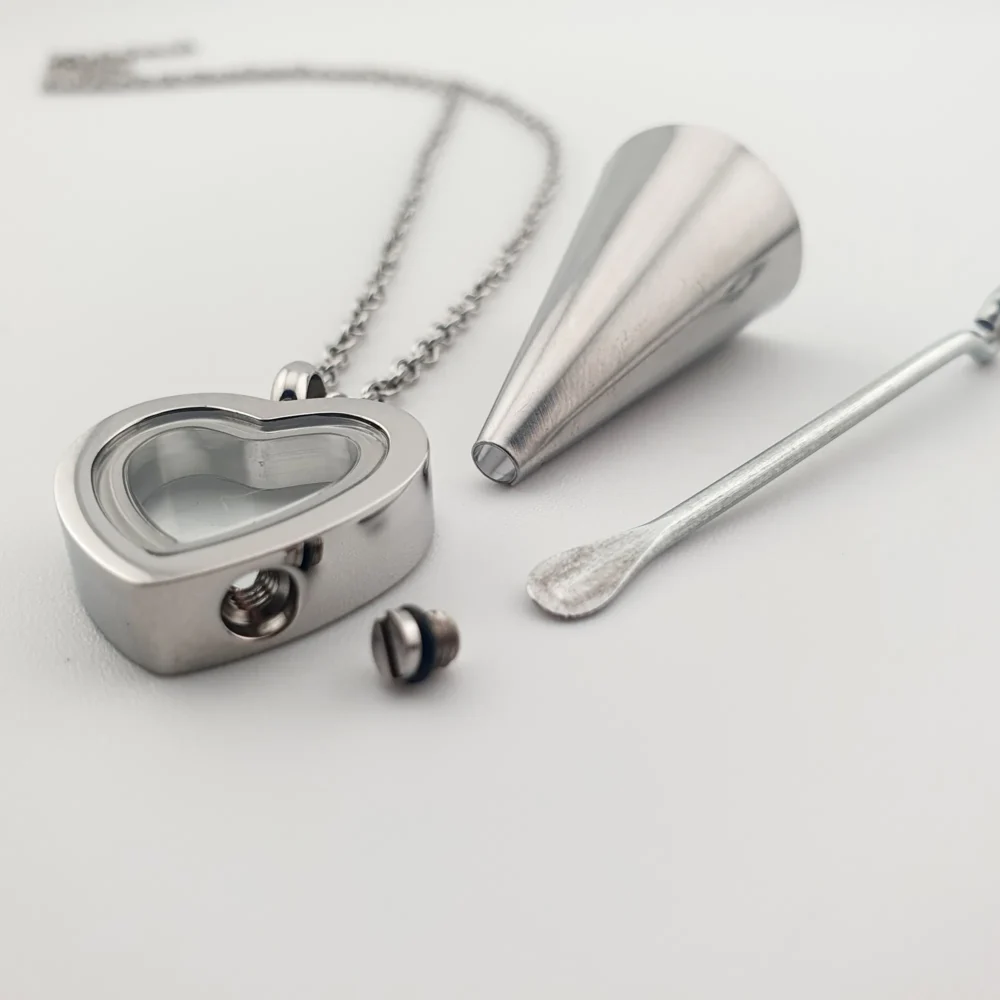 Deze moderne ashanger in hartvorm is vervaardigd uit hoogwaardig roestvrij staal (RVS) en voorzien van een elegant glazen venster. De combinatie van metaal en glas maakt dit een stijlvol en symbolisch sieraad waarin je een kleine hoeveelheid as of een ander betekenisvol aandenken kunt bewaren.